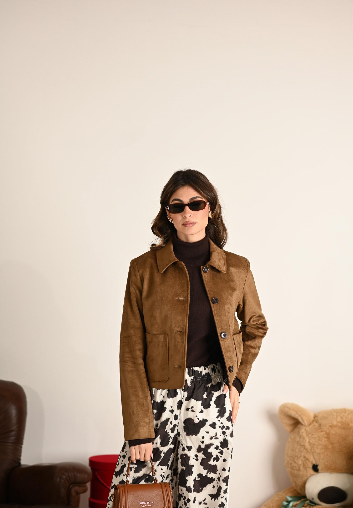 ONLY Giacca in tessuto effetto scamosciato color cammello da donna