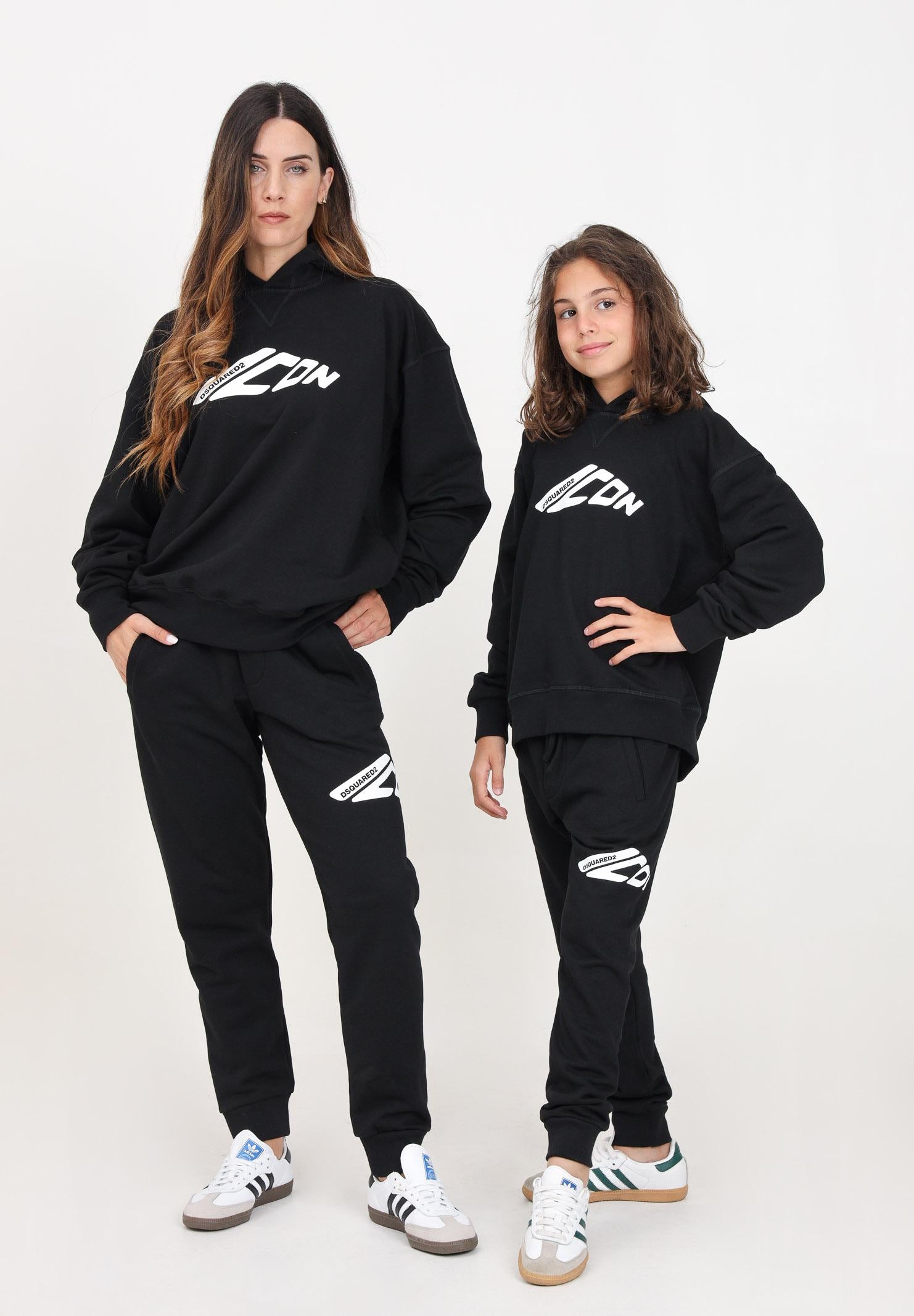 Pantalone sportivo nero per donna e bambina con stampa Icon