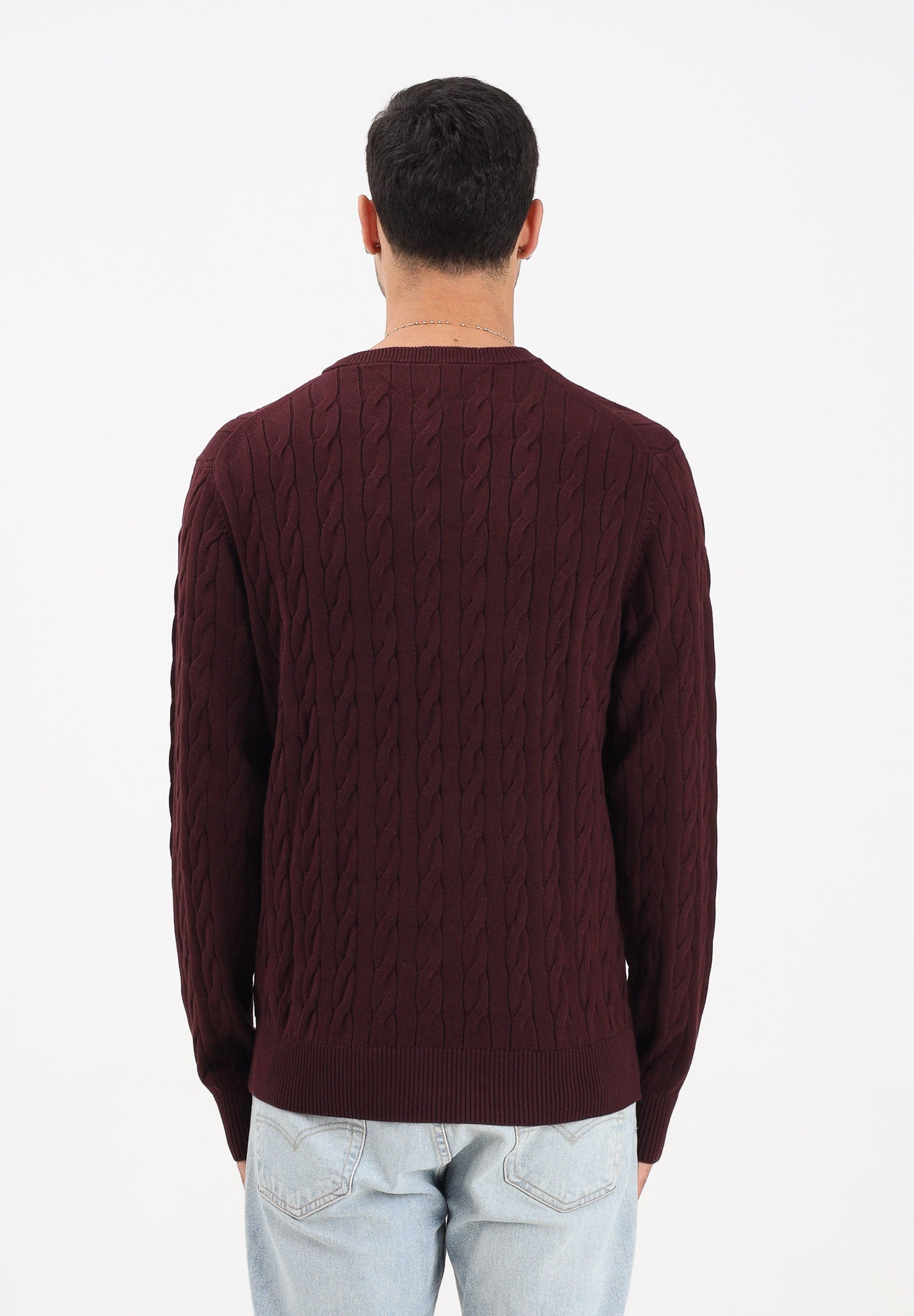 TOMMY HILFIGER Maglioncino girocollo bordeaux da uomo con ricamo bandierina