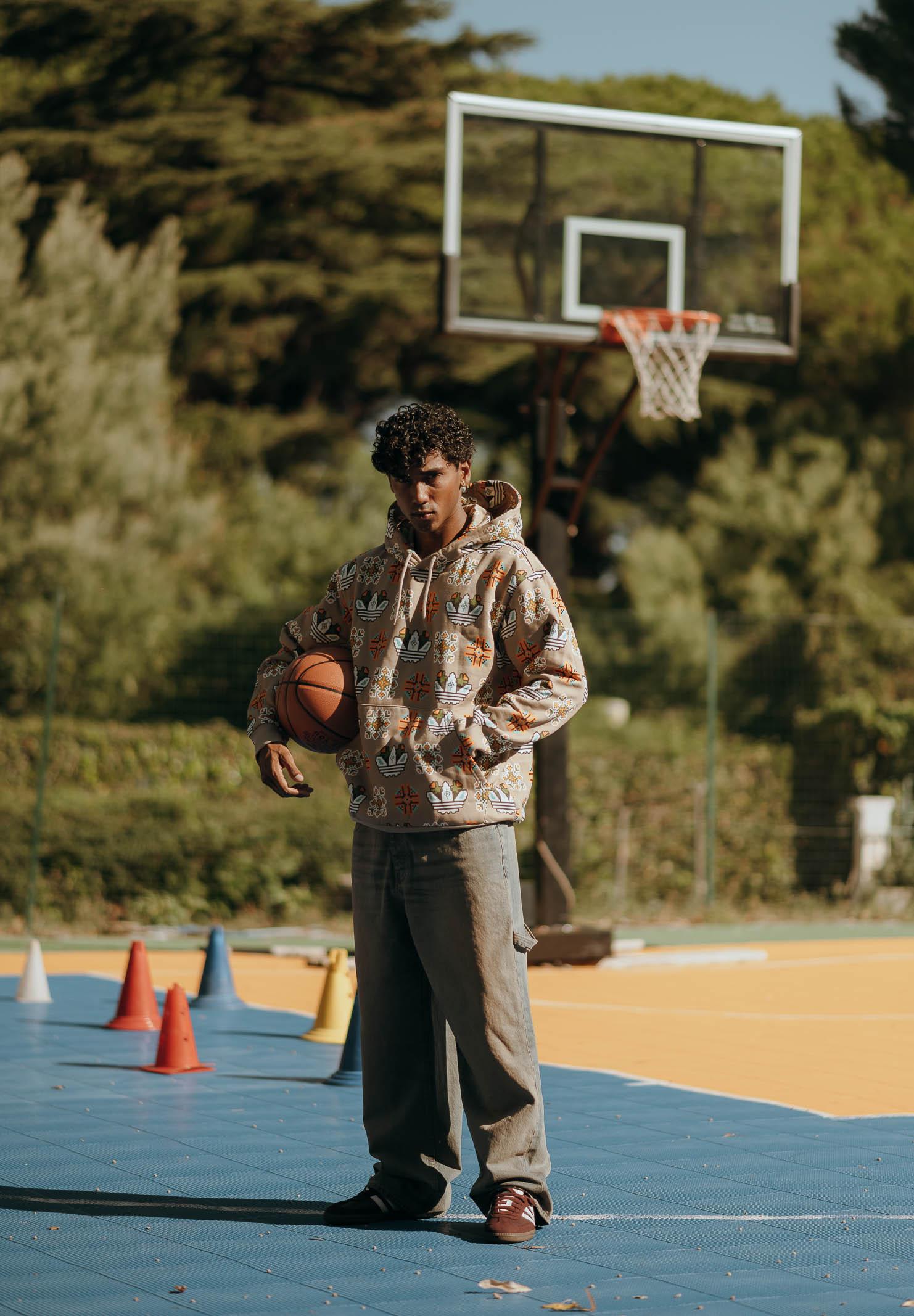 ADIDAS ORIGINALS Felpa con cappuccio GRAPHIC HD FLEECE beige da uomo