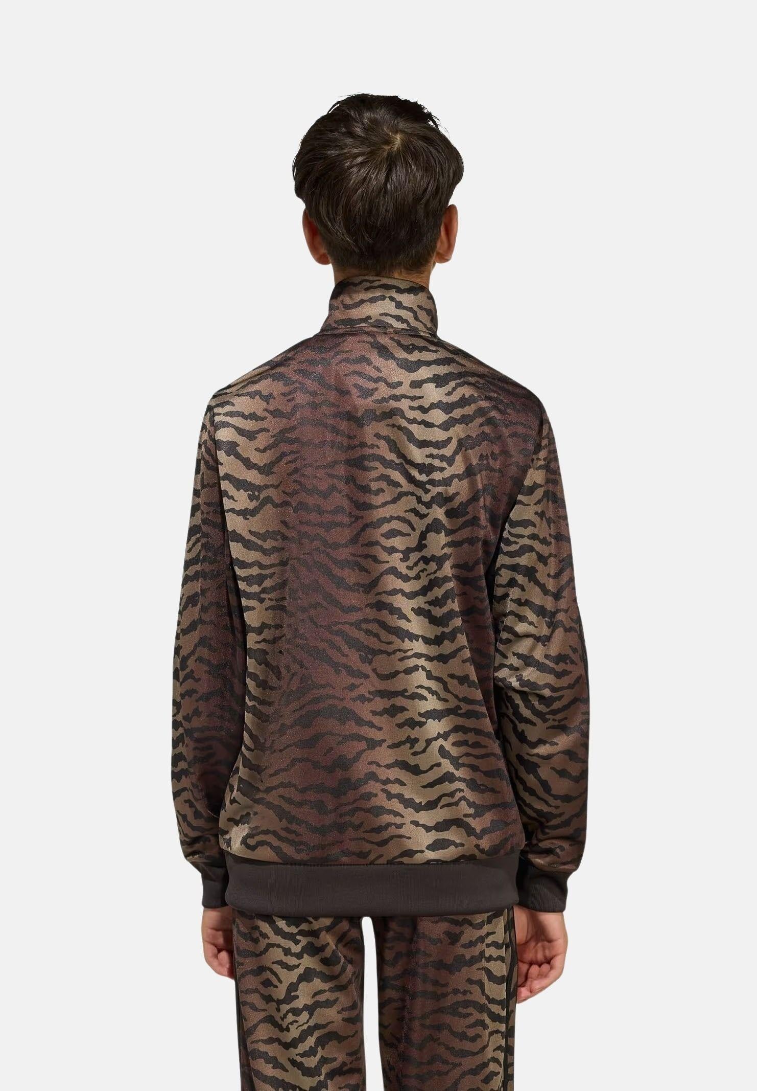 ADIDAS ORIGINALS Felpa con zip FIREBIRD LOOSE AOP tigrata marrone per bambino e bambina
