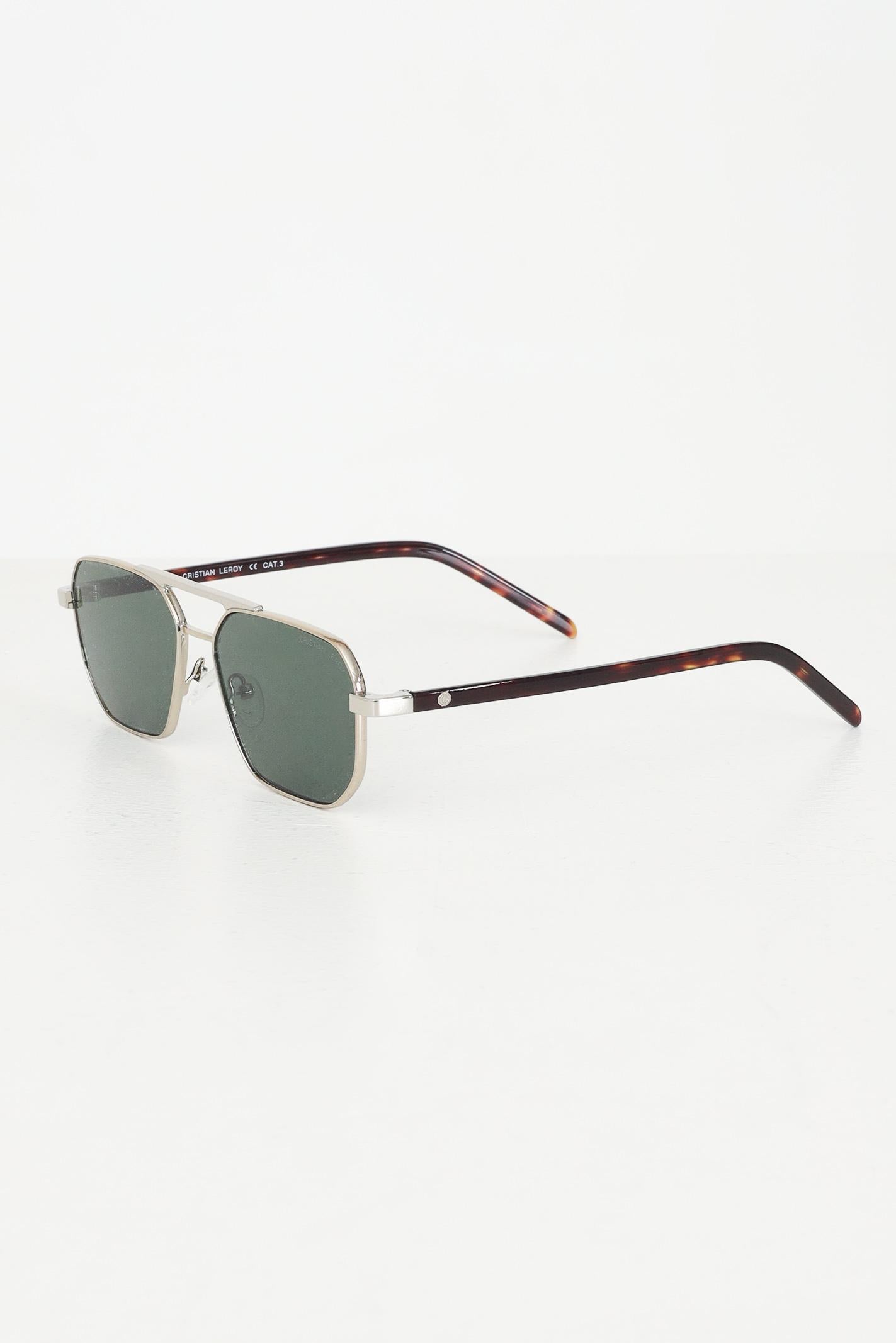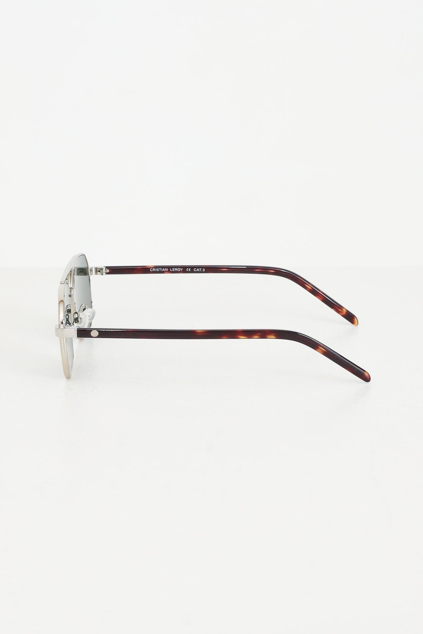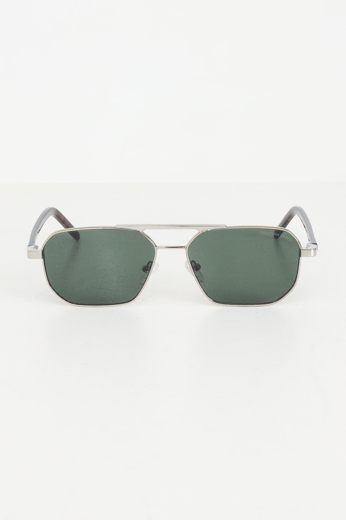 Occhiali da sole per uomo e donna con montatura argento e aste tartarugate
