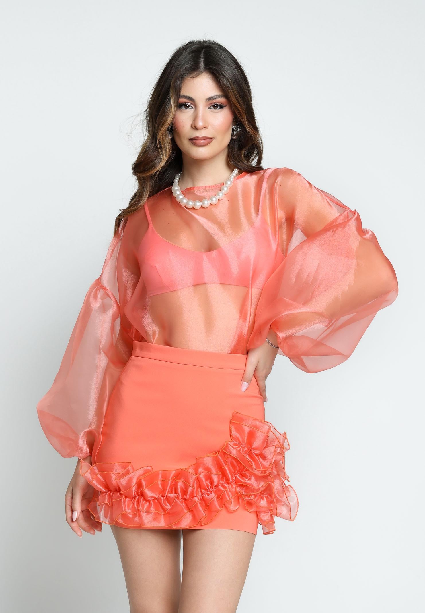 Blusa arancio donna regular fit primavera estate PV25015CORALLO