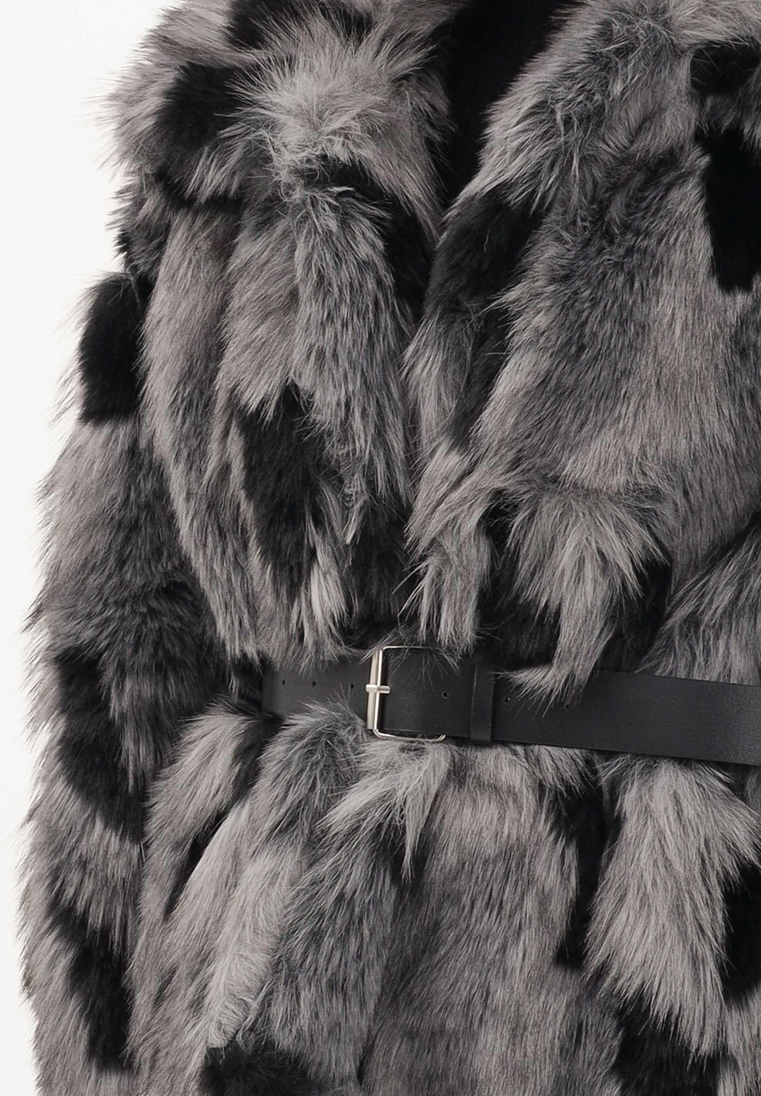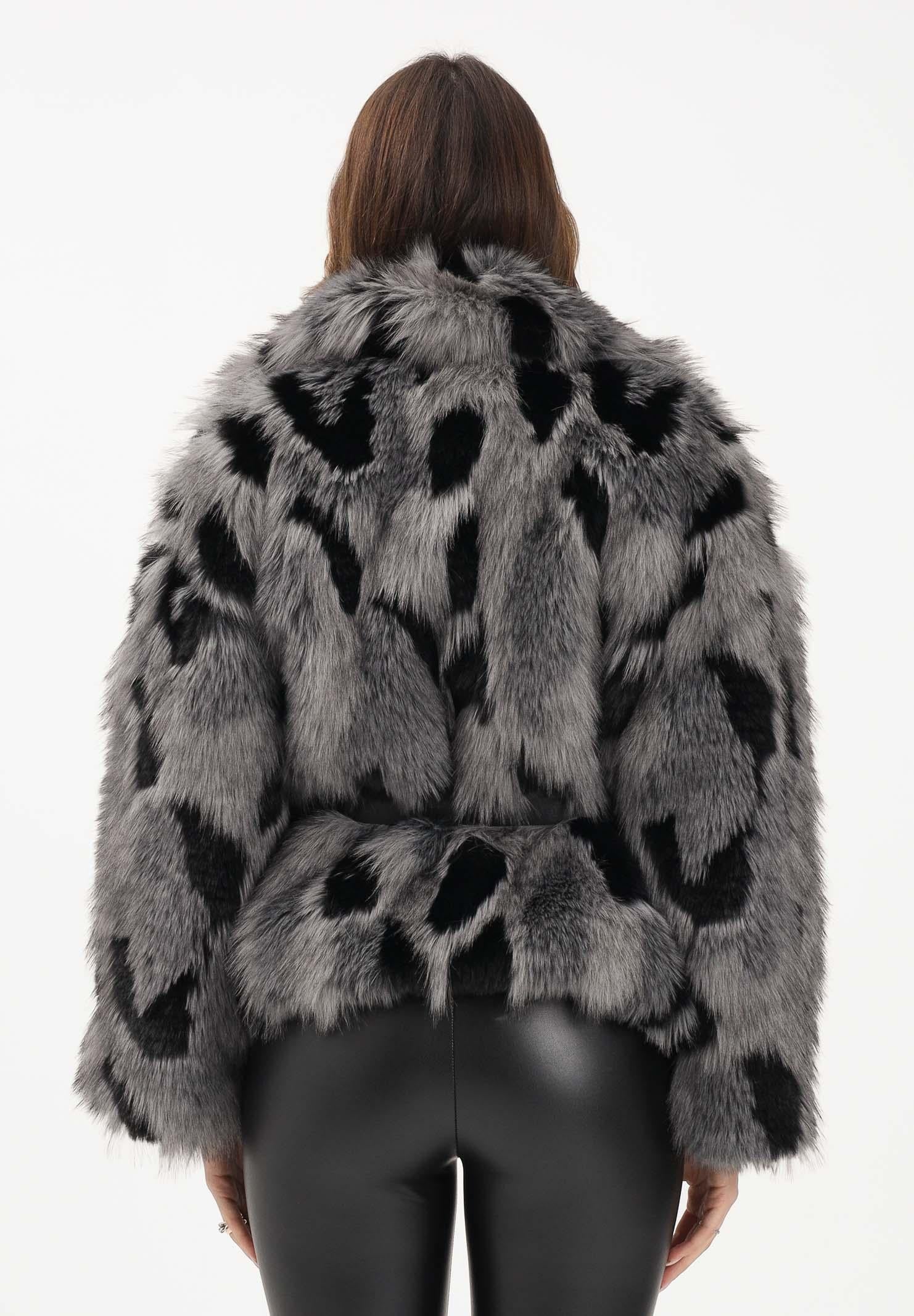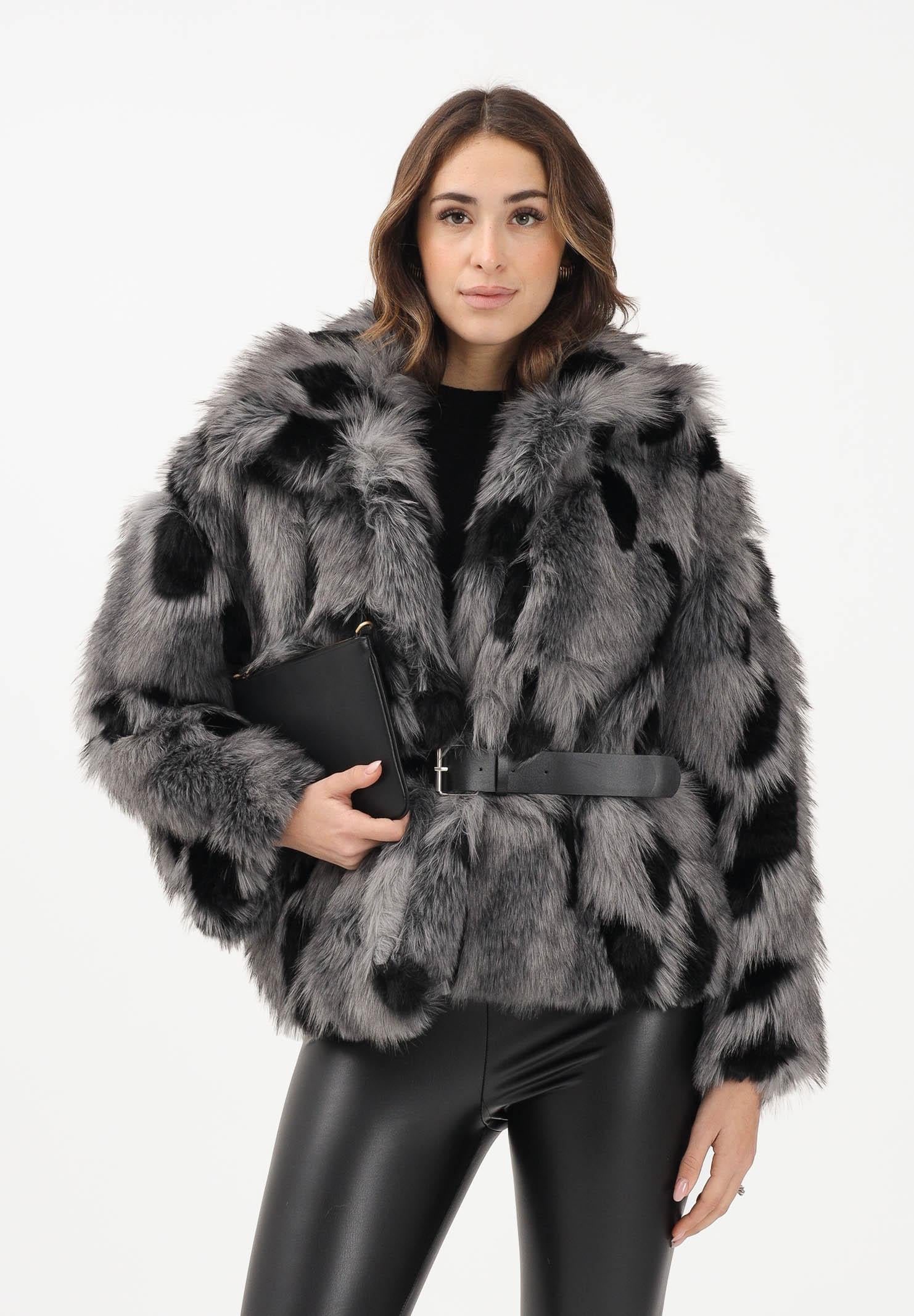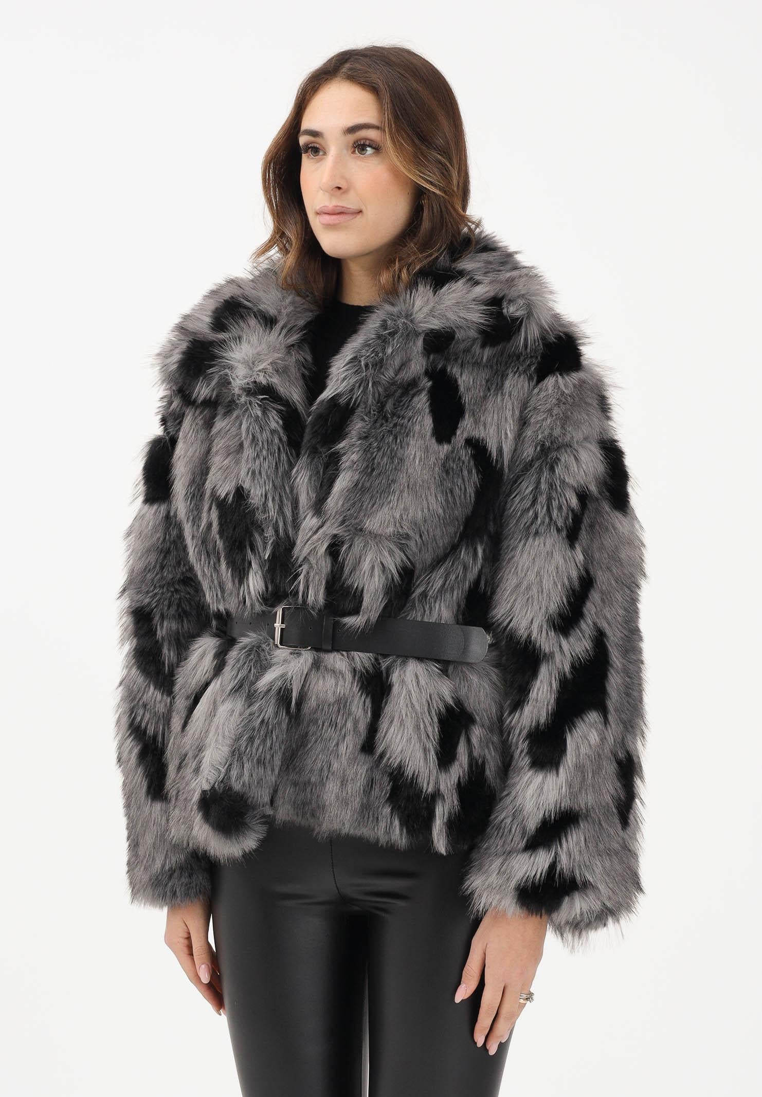 VICOLO Pelliccia grigia e nera da donna con cintura