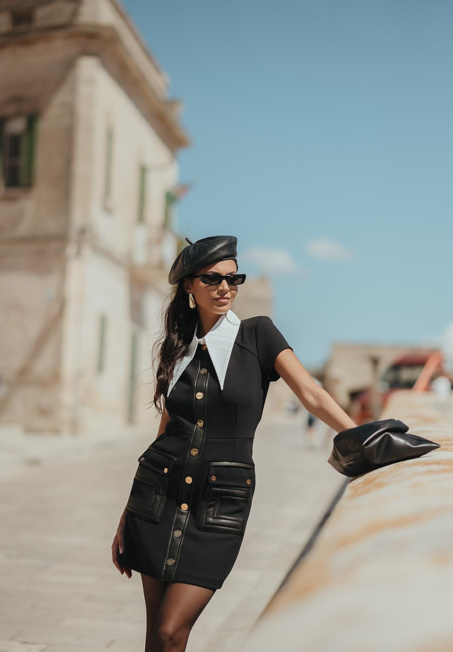 ELISABETTA FRANCHI Abito corto nero da donna con dettagli logo