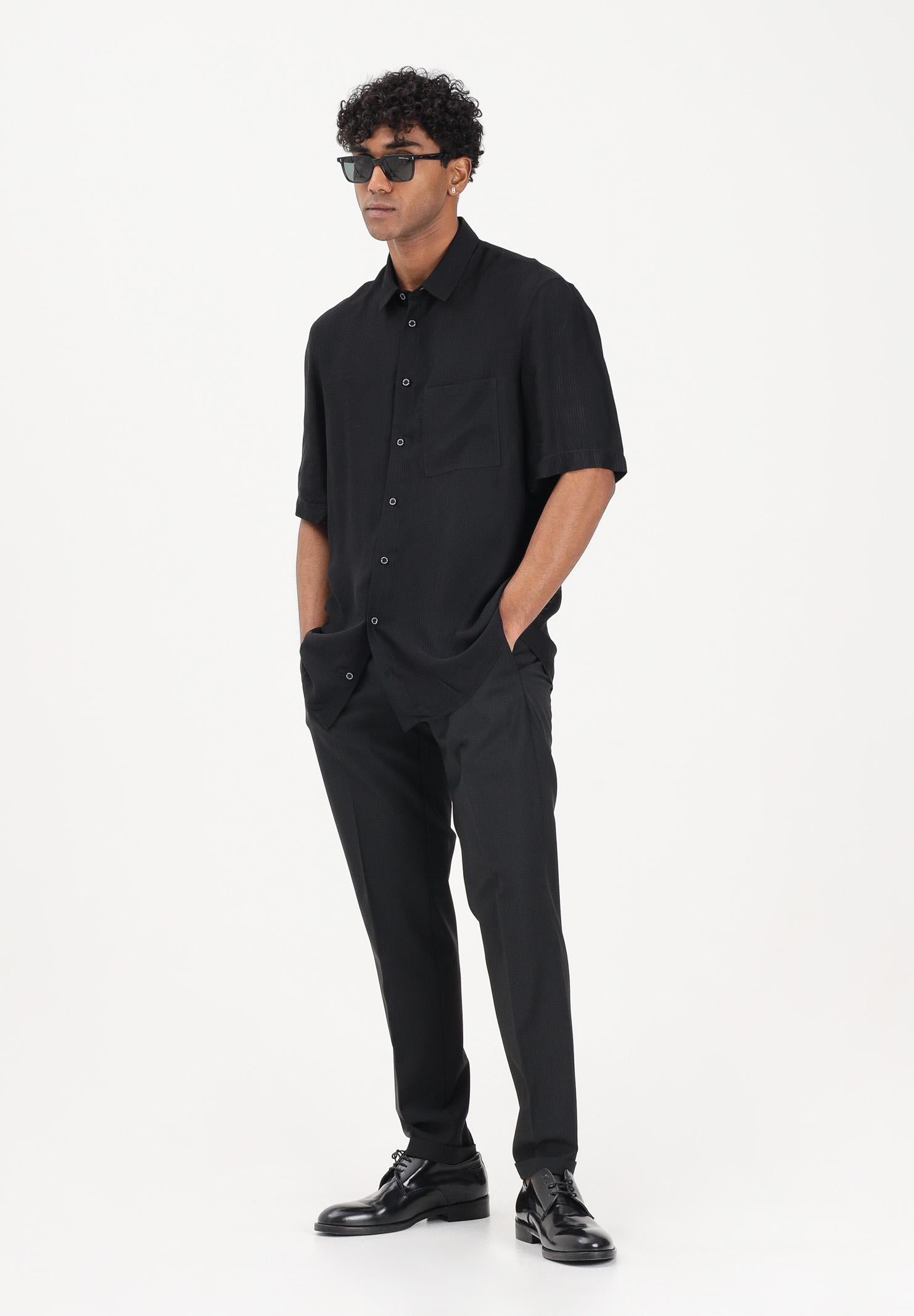 PATRIZIA PEPE Camicia a manica corta nera da uomo in viscosa jacquard