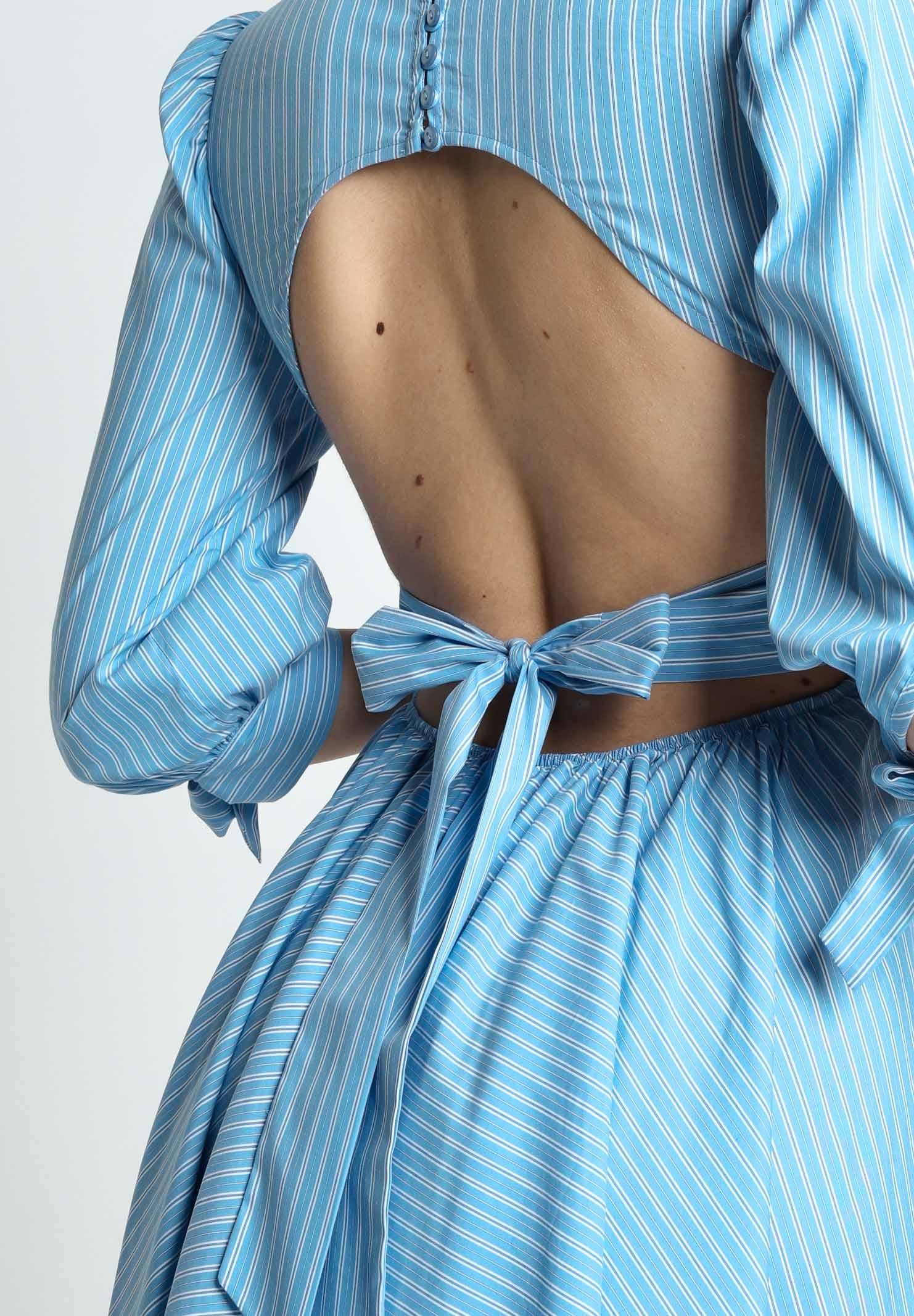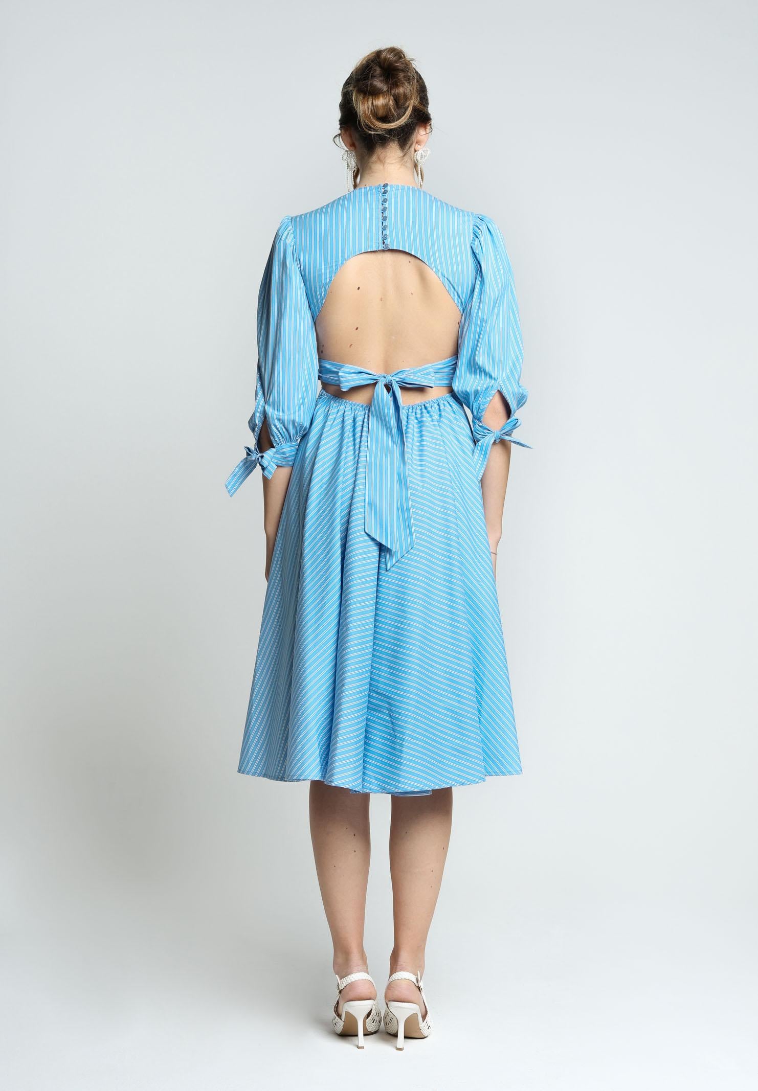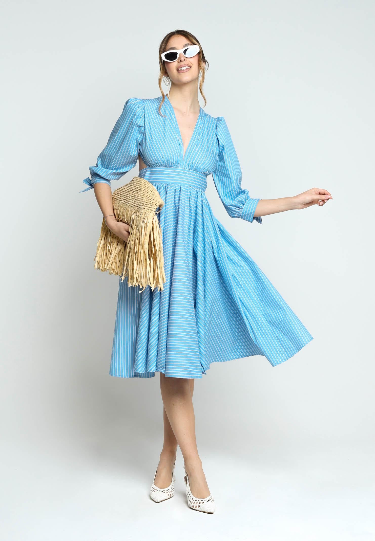 SANTAS Abito midi TIRAMISU' celeste da donna con stampa a righe